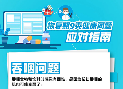 呼吸急促(氣短)、咳嗽、乏力、失眠、疼痛、心悸、聲音問題、吞咽問題、嗅覺味覺下降等都是感染新冠病毒后可能出現的健康問題。恢復期9類健康問題,請收好這份應對指南