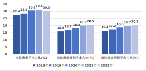 圖2?2018-2022年三級公立醫(yī)院出院患者手術(shù)開展情況